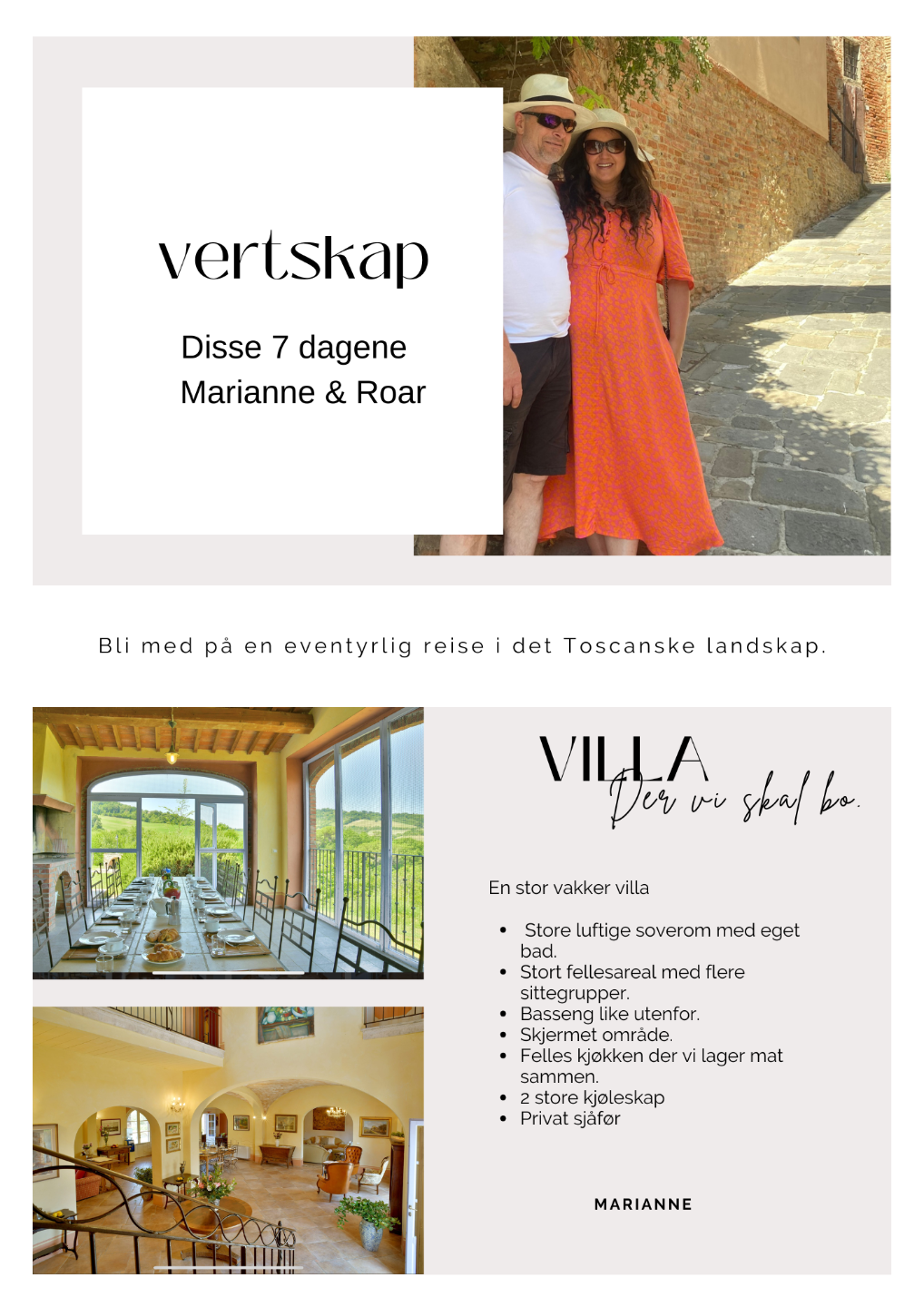 - Roar henter dere på flyplassen i Pisa når dere ankommer og kjører dere til Villaen i Guardistallo.