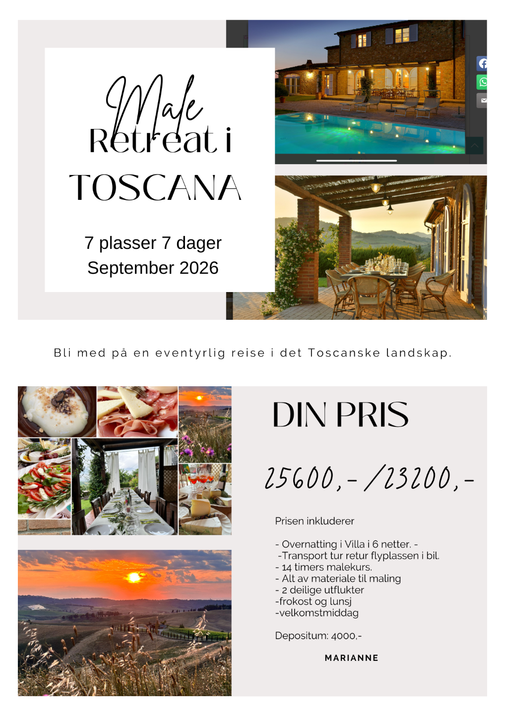 Bli med på en drømme reise inn i det Toscanske landskap, med maling avspenningog nydelig Italiensk mat.